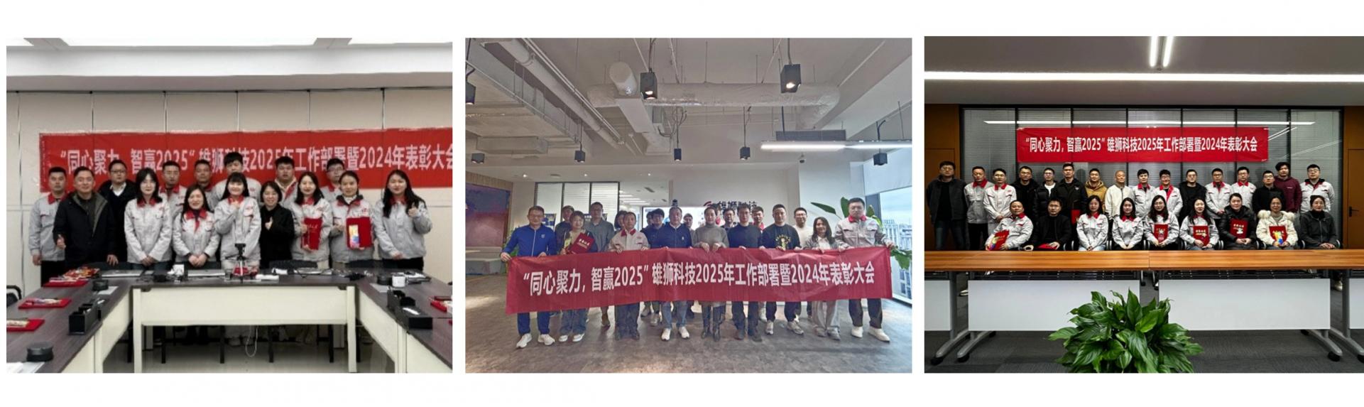 2025年3月3日,雄狮科技2024年评优表彰大会暨2025年工作部署成功举办。公司经营班子领导、模块长及获奖代表现场出席会议,全体员工通过线上方式参会,共同回顾2024年发展业绩,展望2025年发展蓝图。