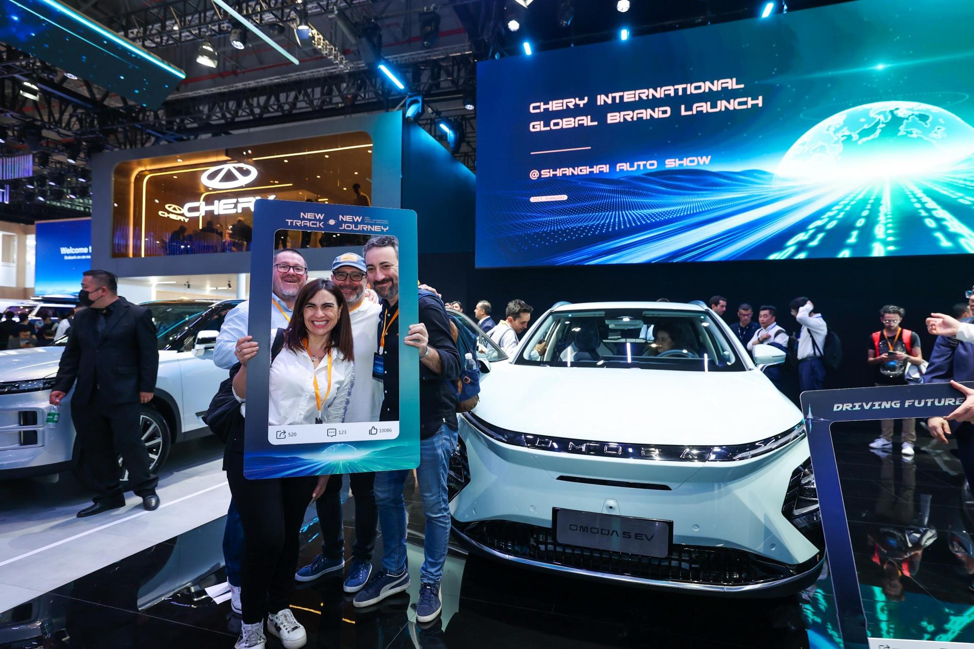 图为2023上海国际车展上吸引全球用户和媒体关注的奇瑞展区