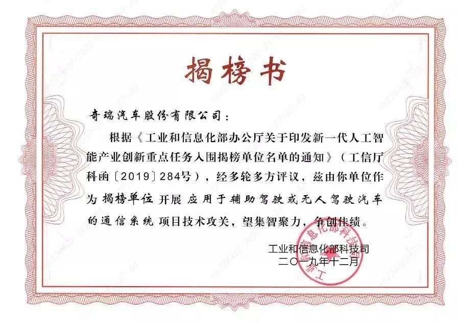 7月8日,2021世界人工智能大会(WAIC2021)在上海隆重召开。大会期间,国家工业和信息化部发布了“新一代人工智能产业创新重点任务揭榜项目测评成果”,由雄狮科技主导,代表奇瑞汽车股份有限公司的“应用于辅助驾驶或无人驾驶汽车的通信系统”项目胜出,奇瑞公司与腾讯、阿里等30家企业一起荣膺国家首批“人工智能产业创新揭榜优胜单位”。